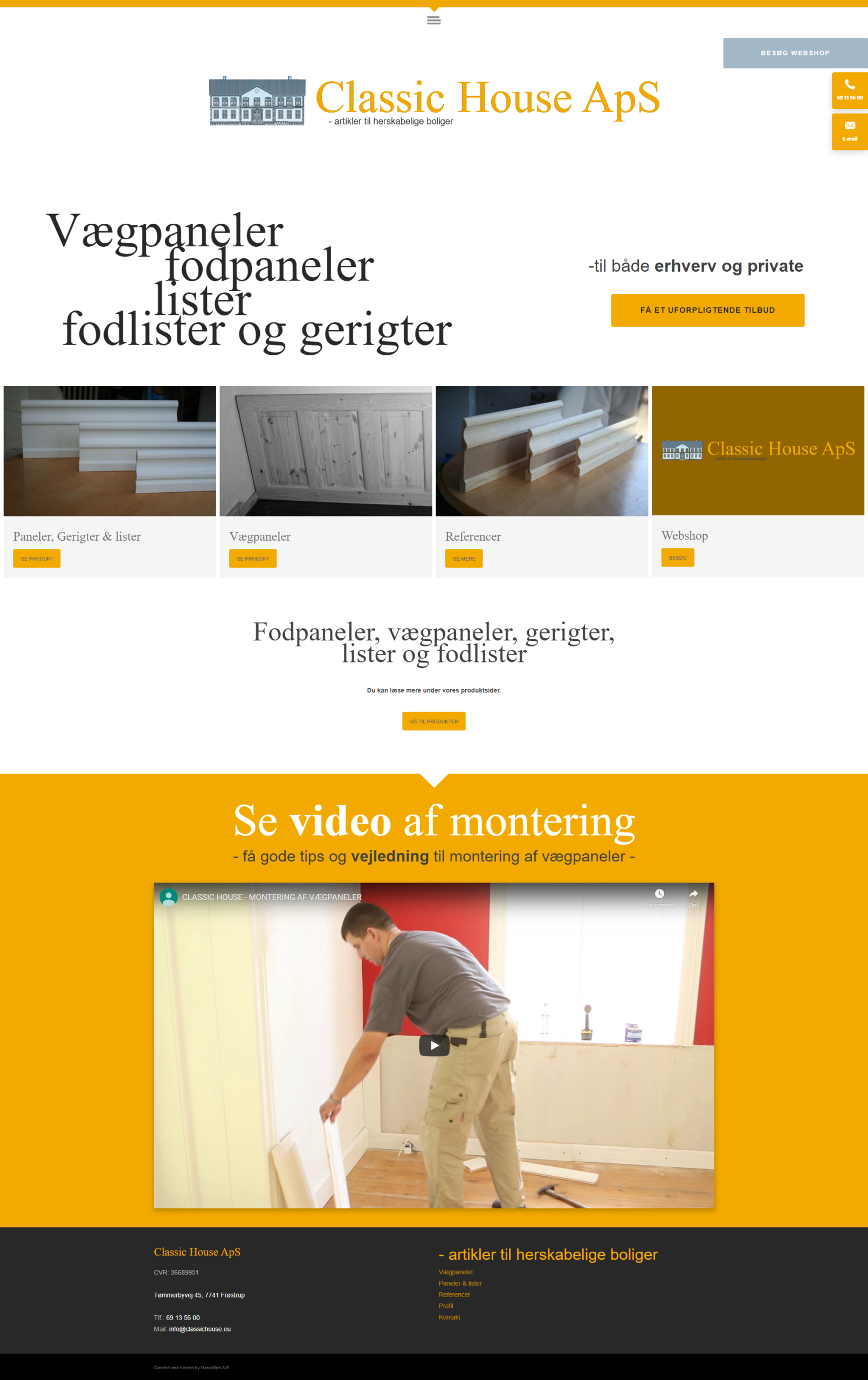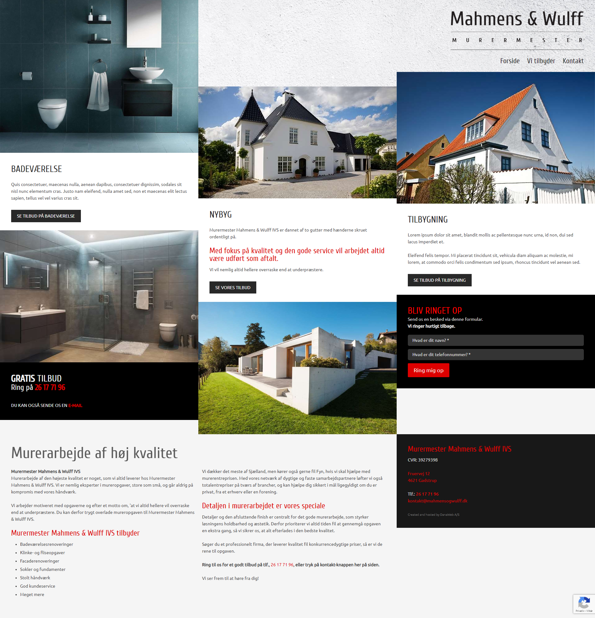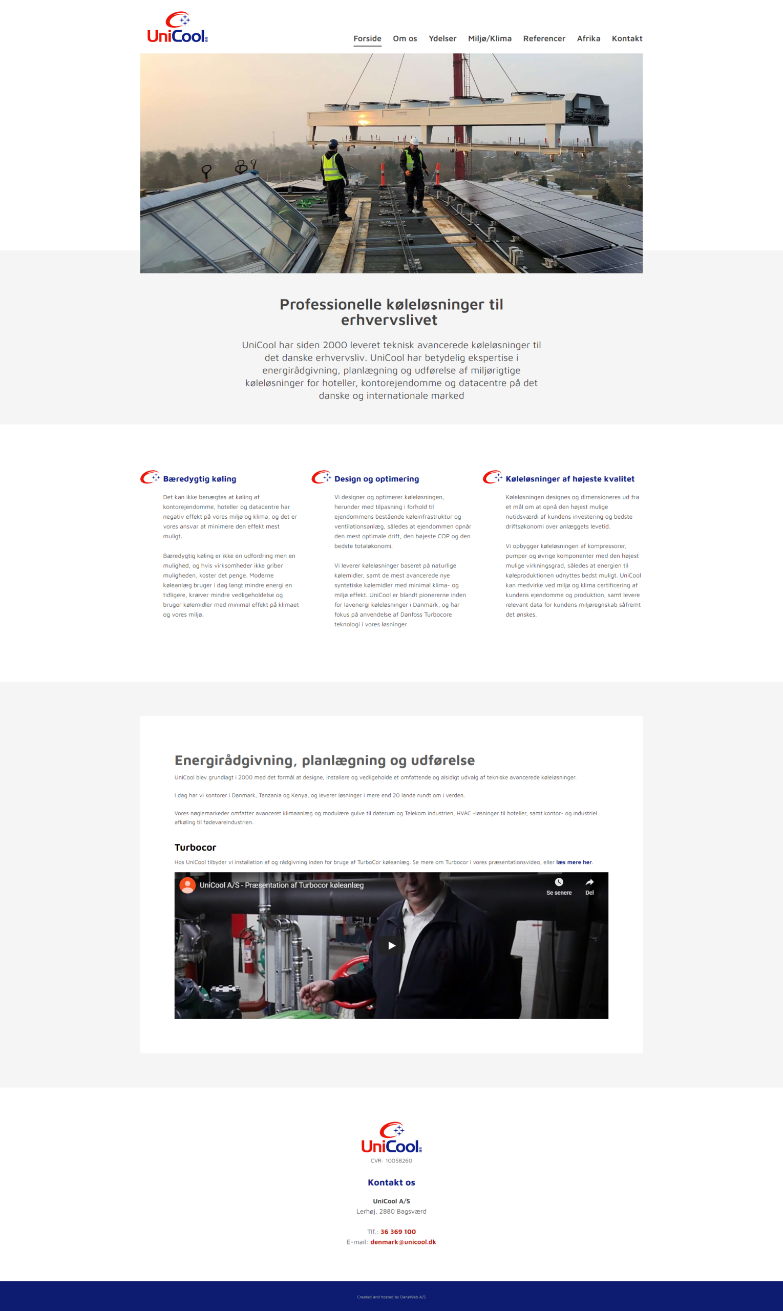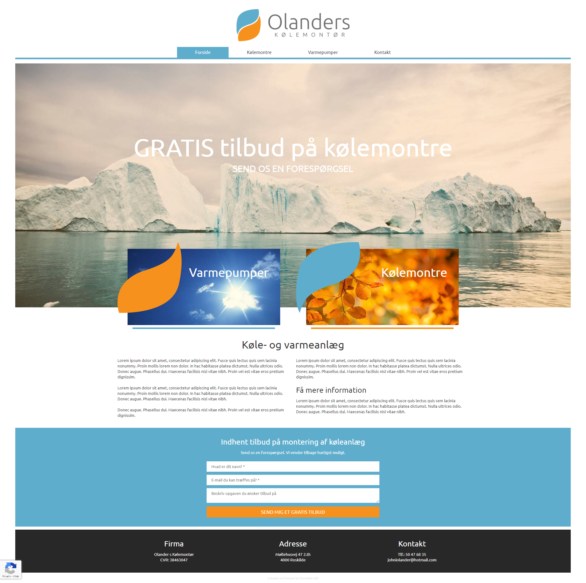 Website layout for a danish company.