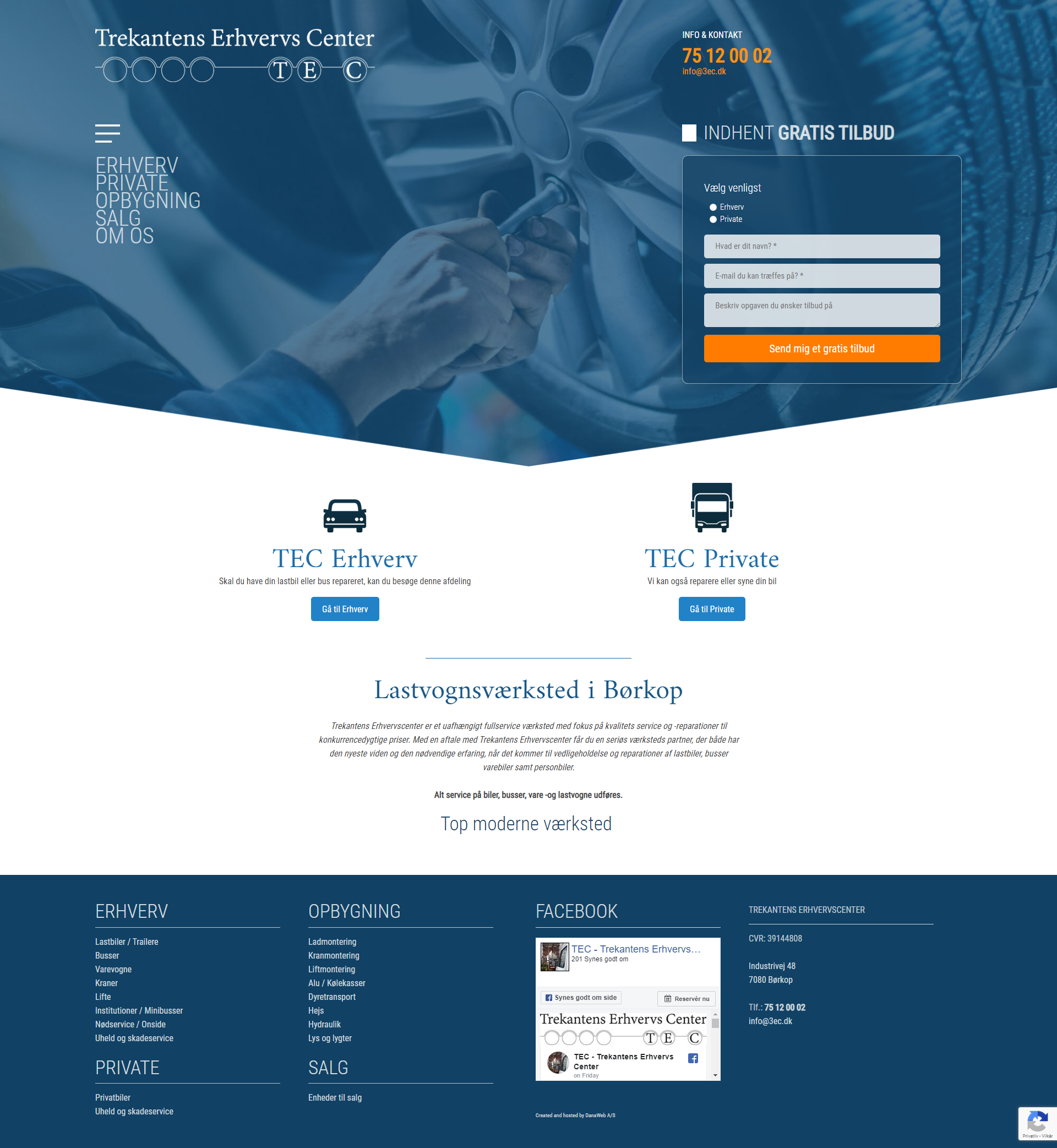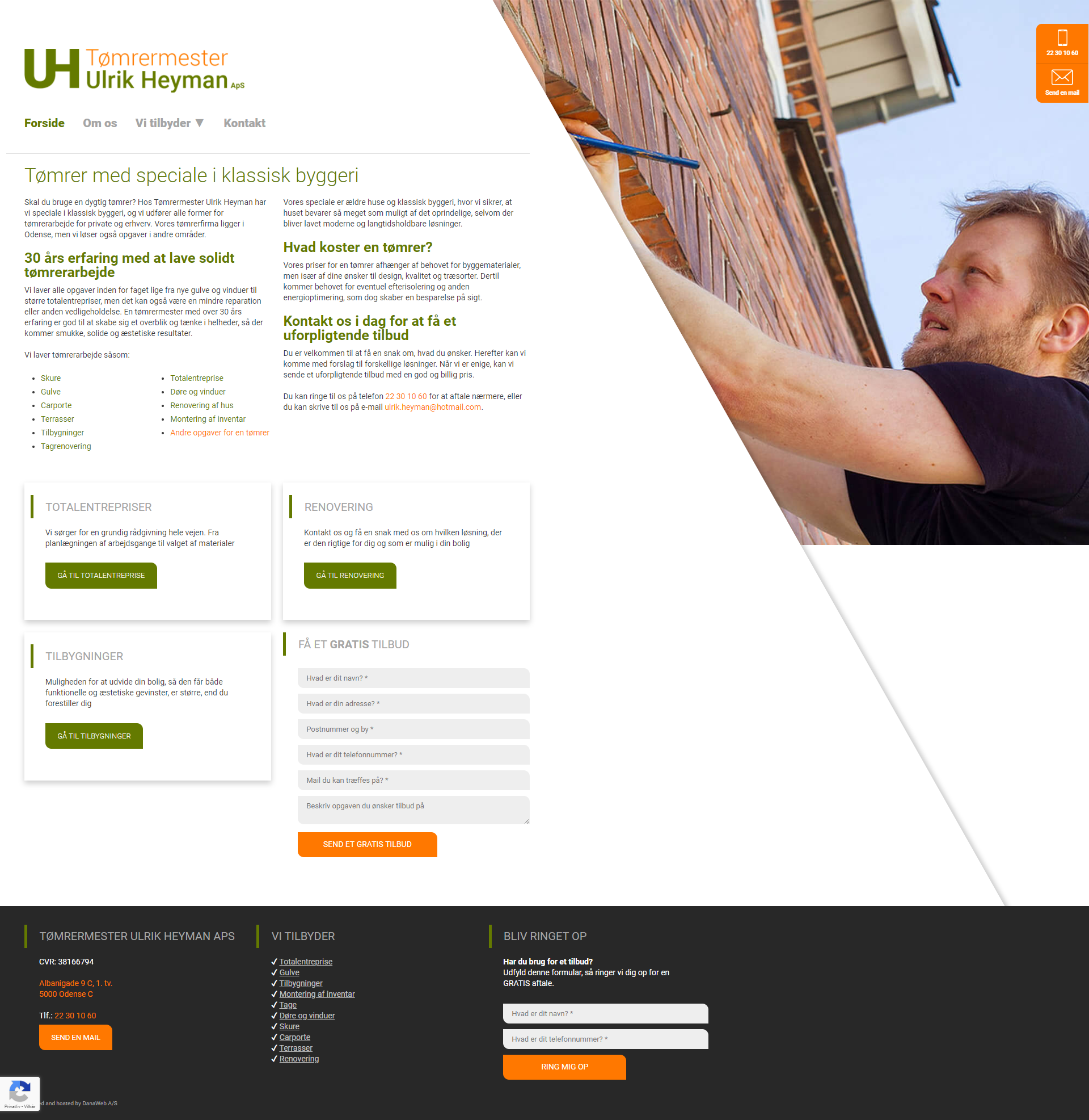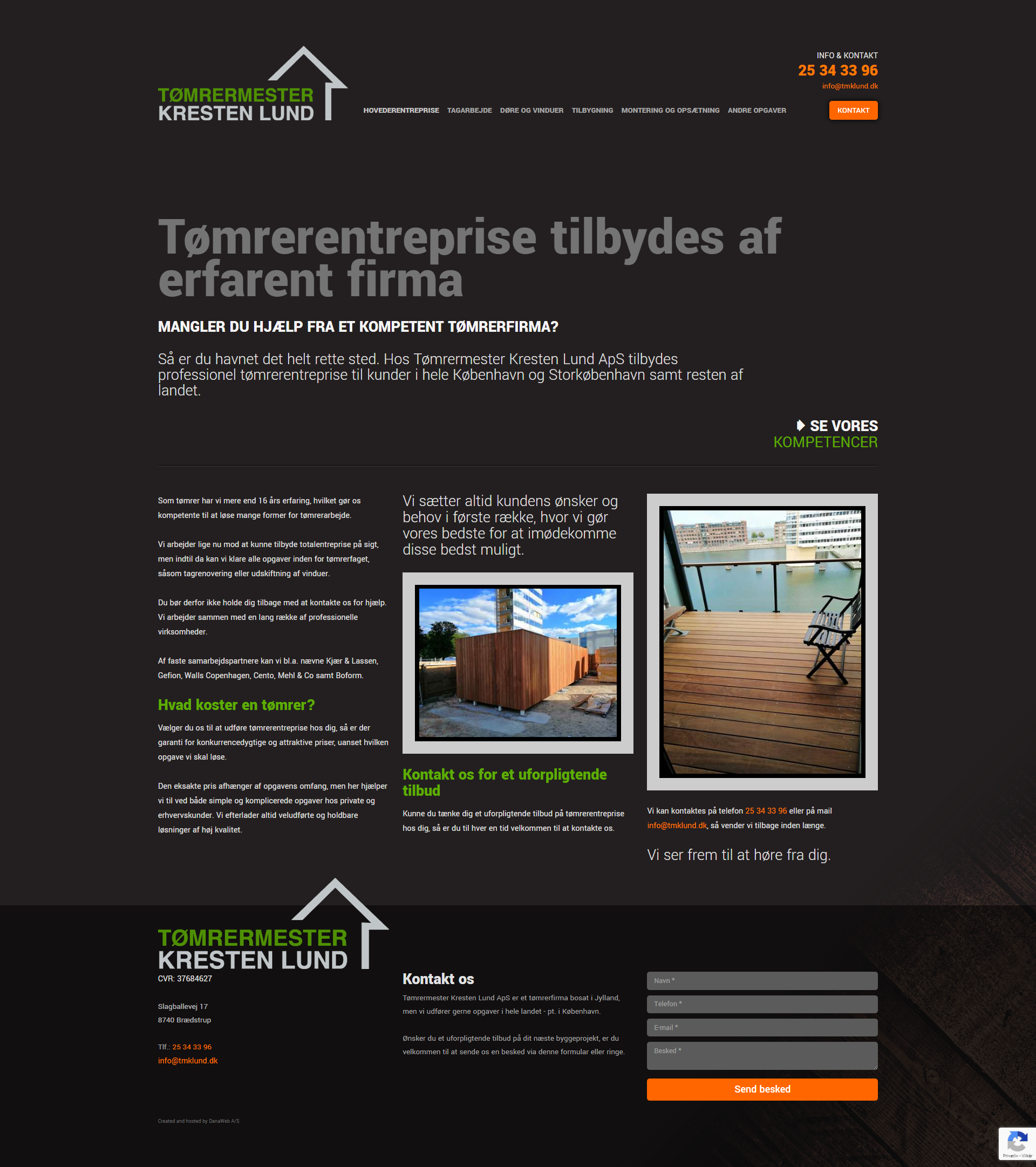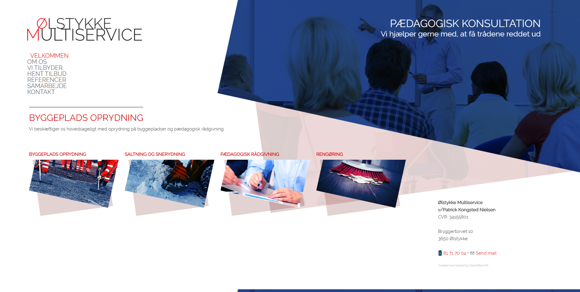 Website layout for a danish company.