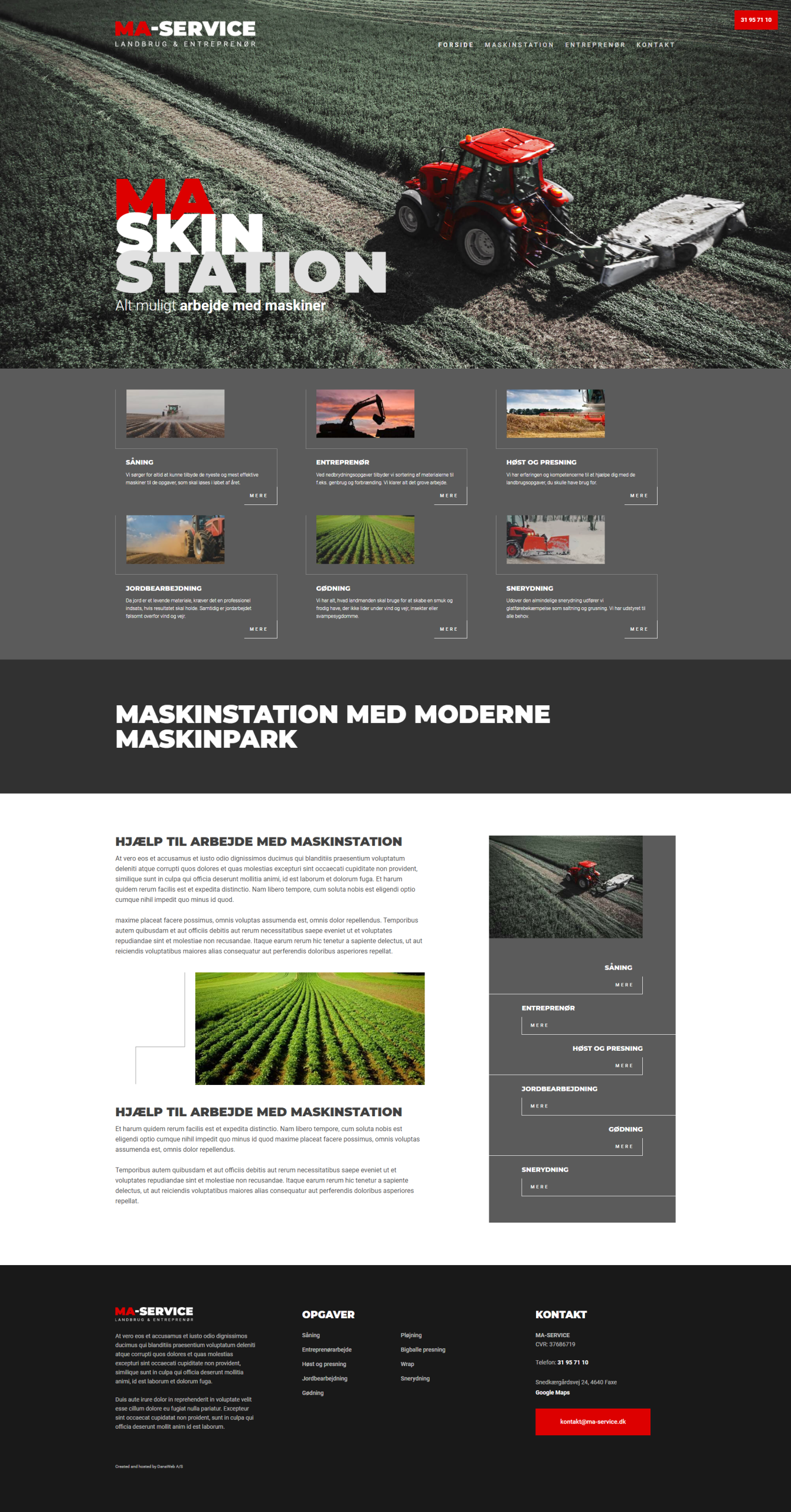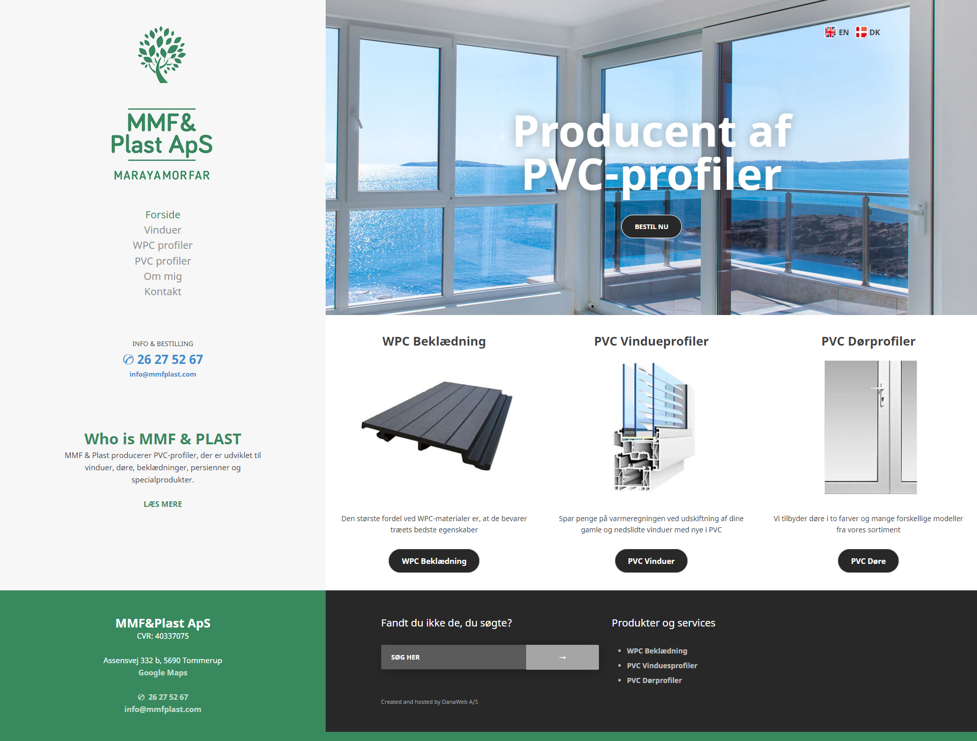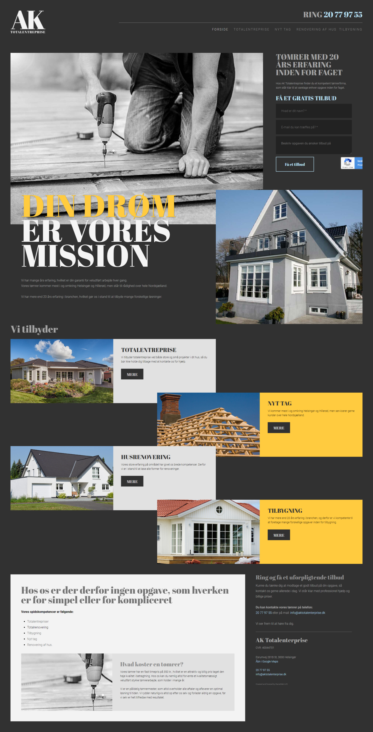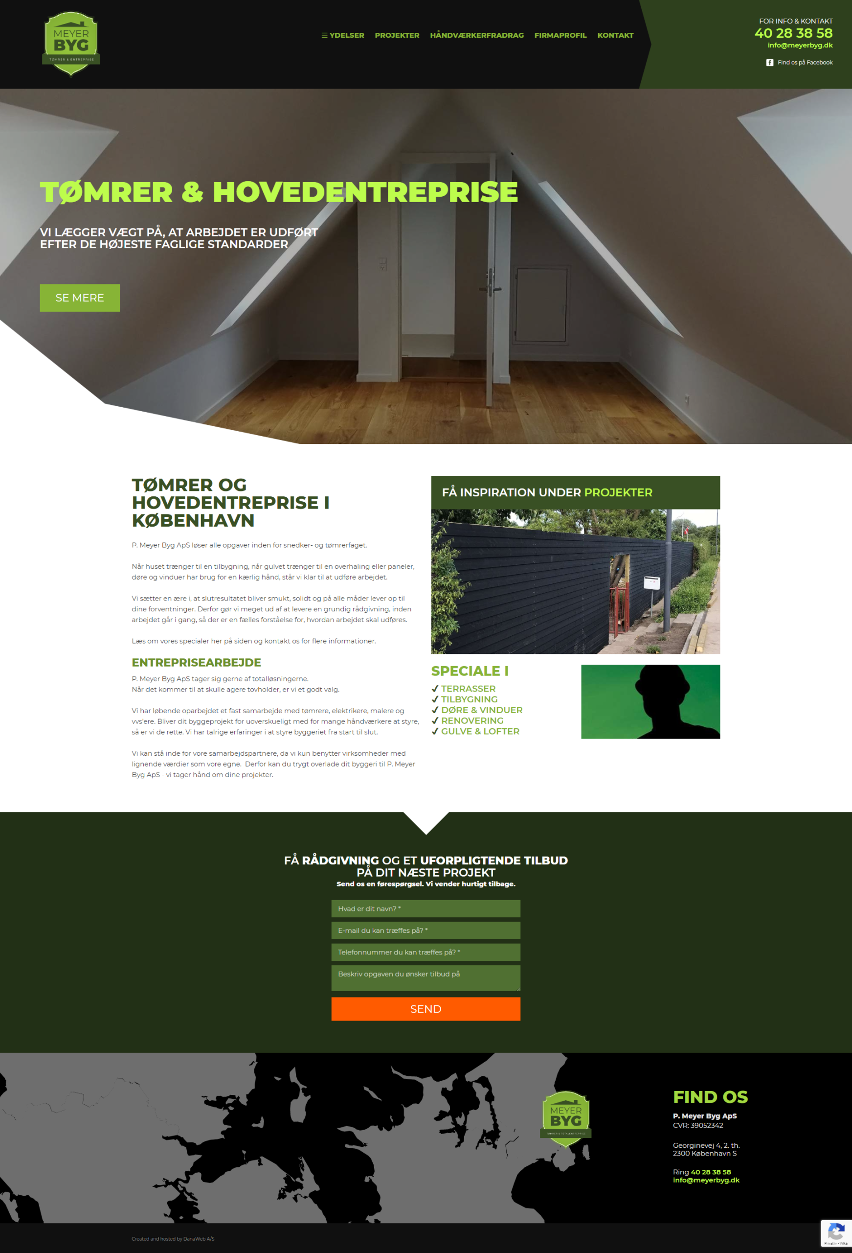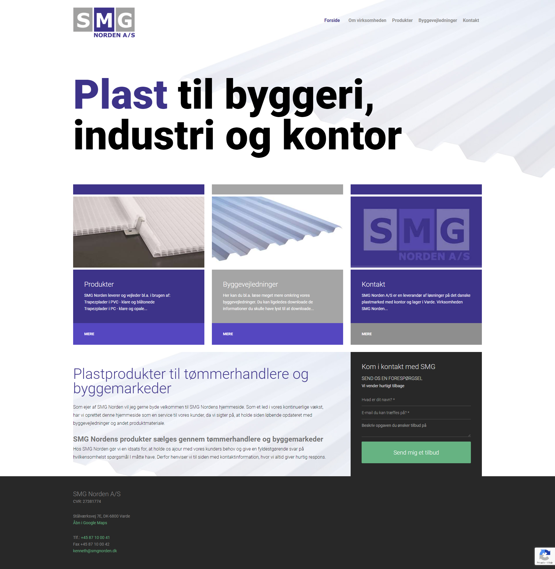Website layout for a danish company.