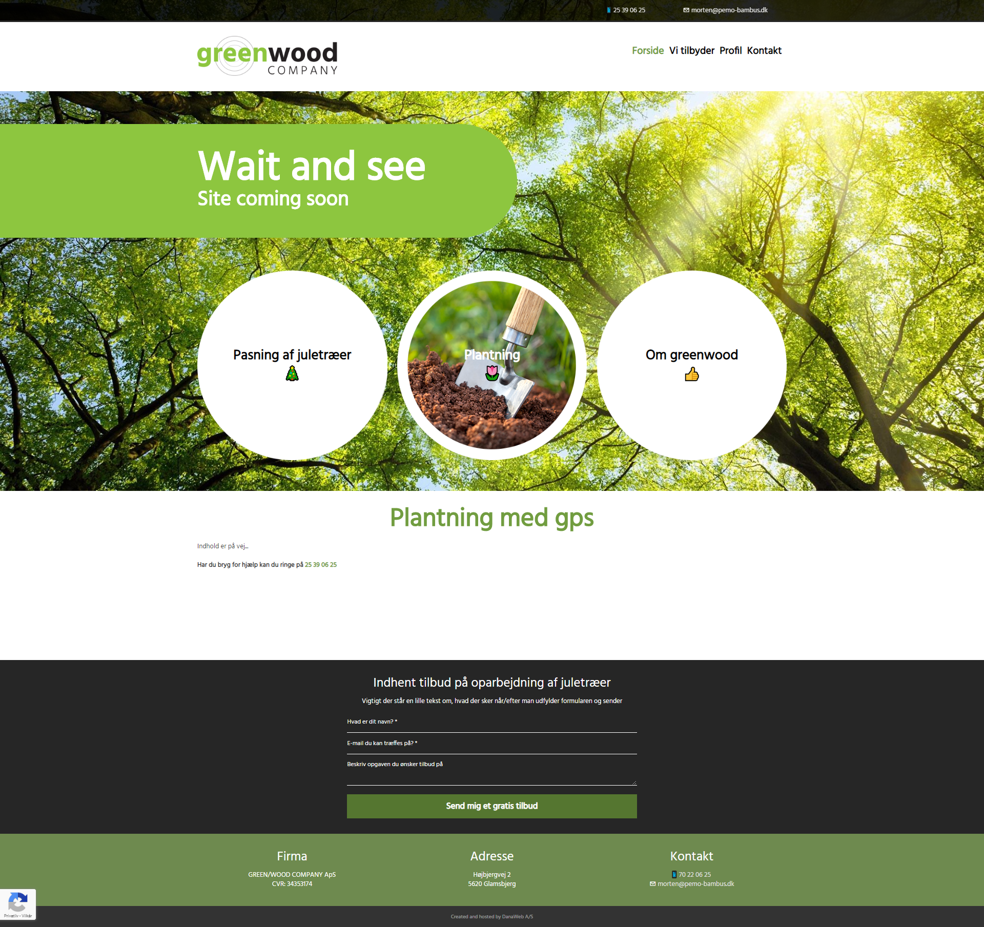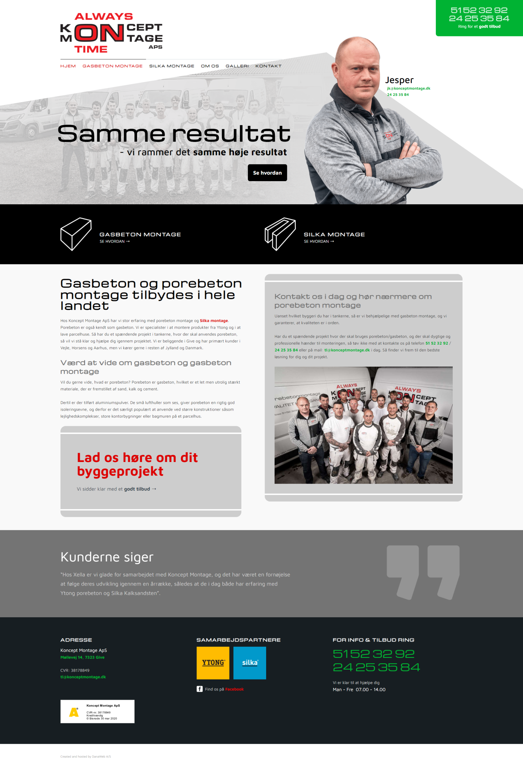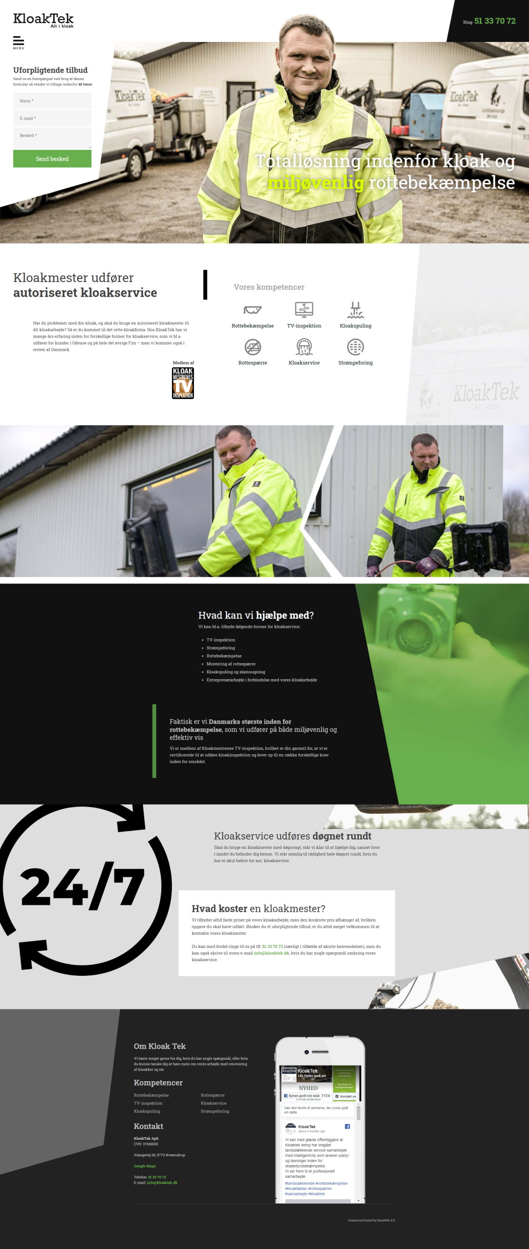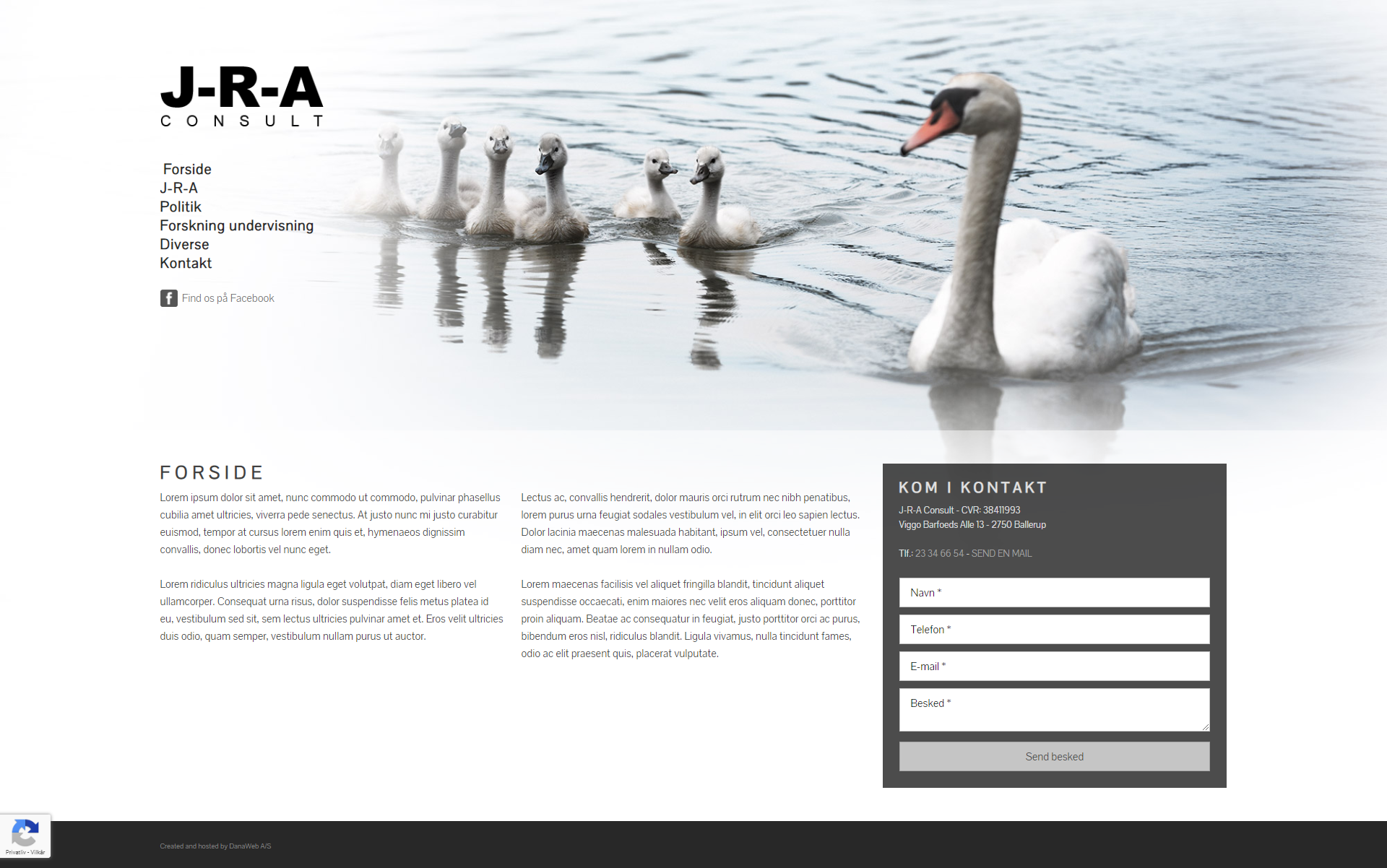 Website layout for a danish company.