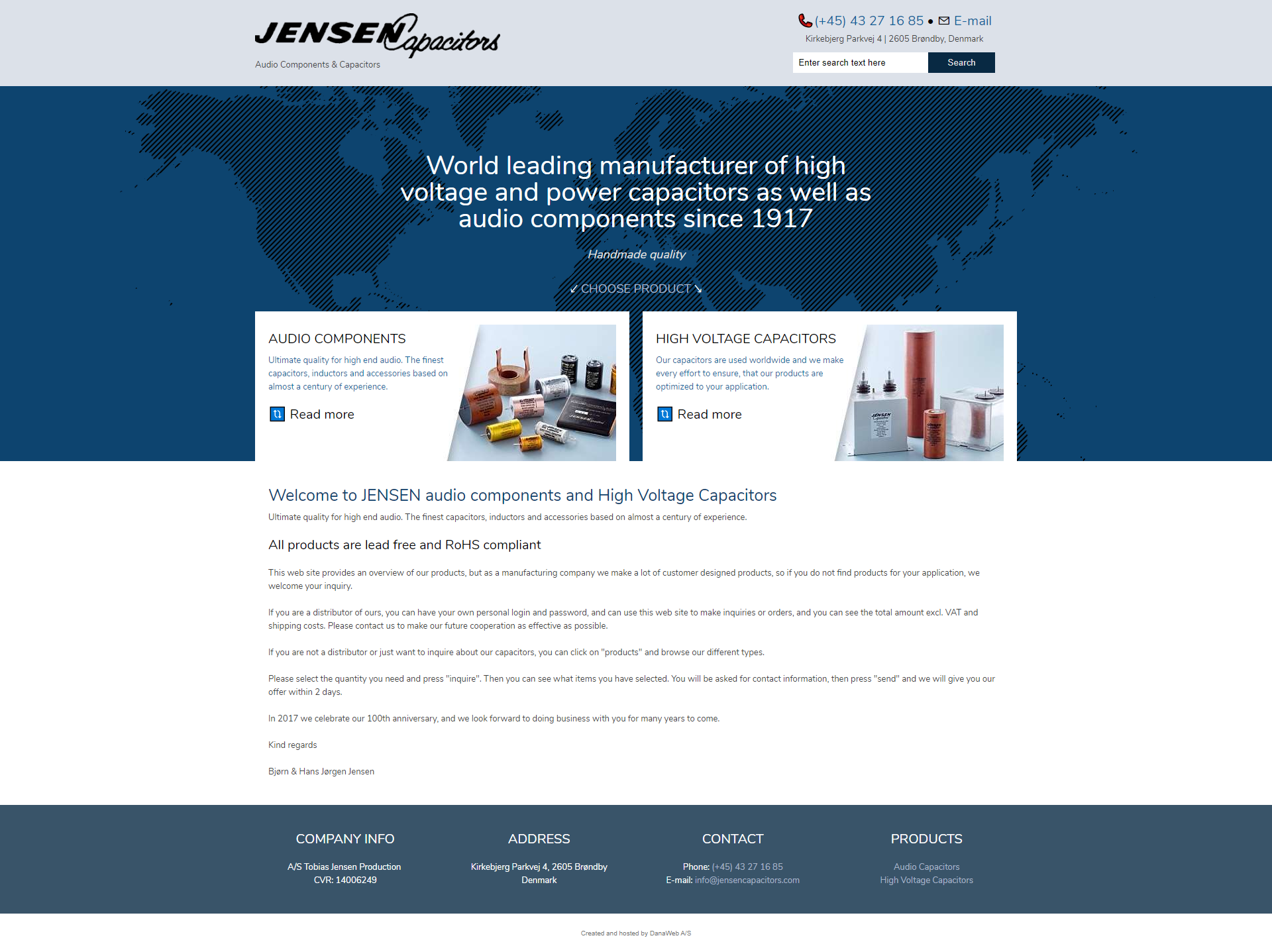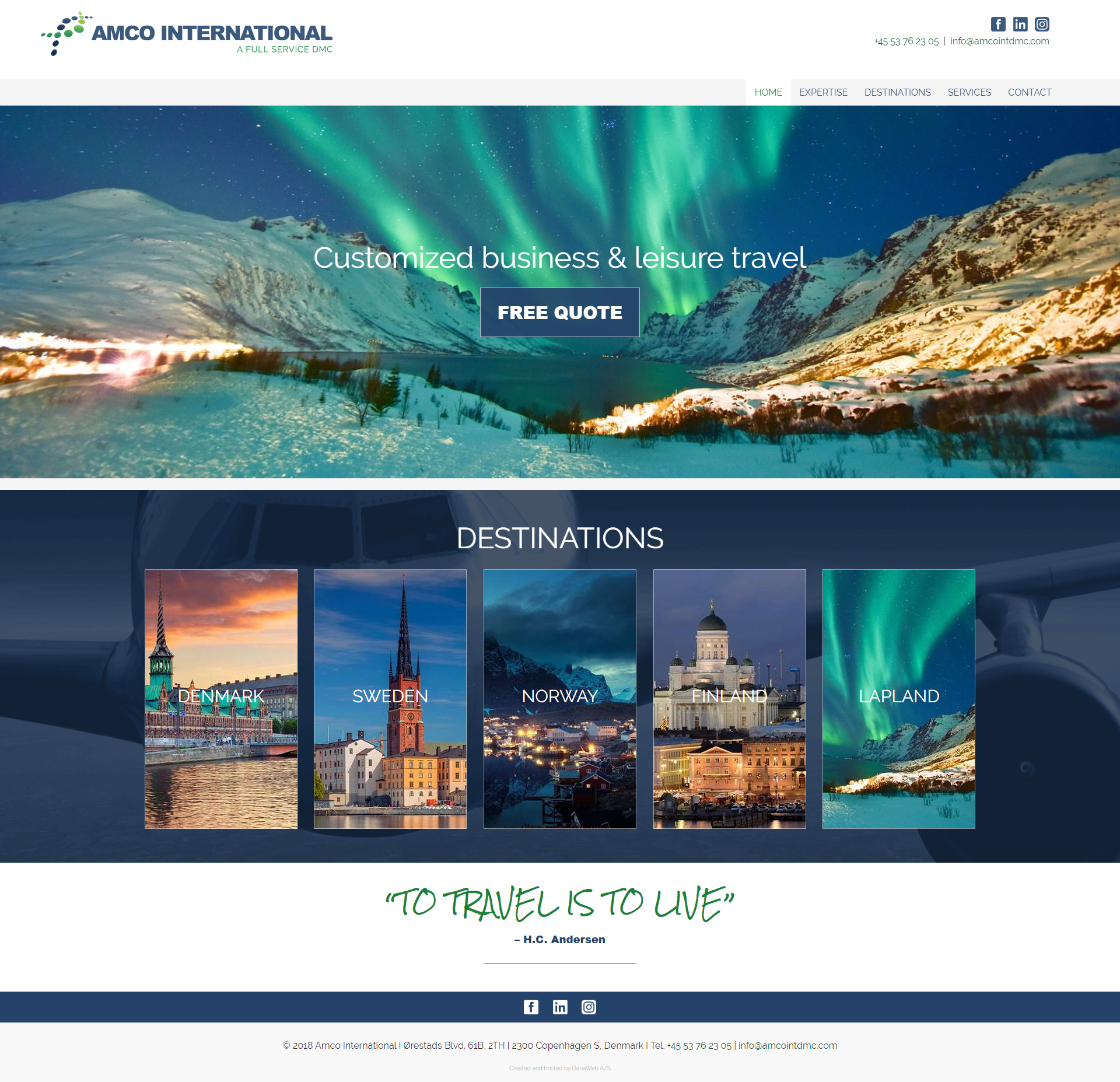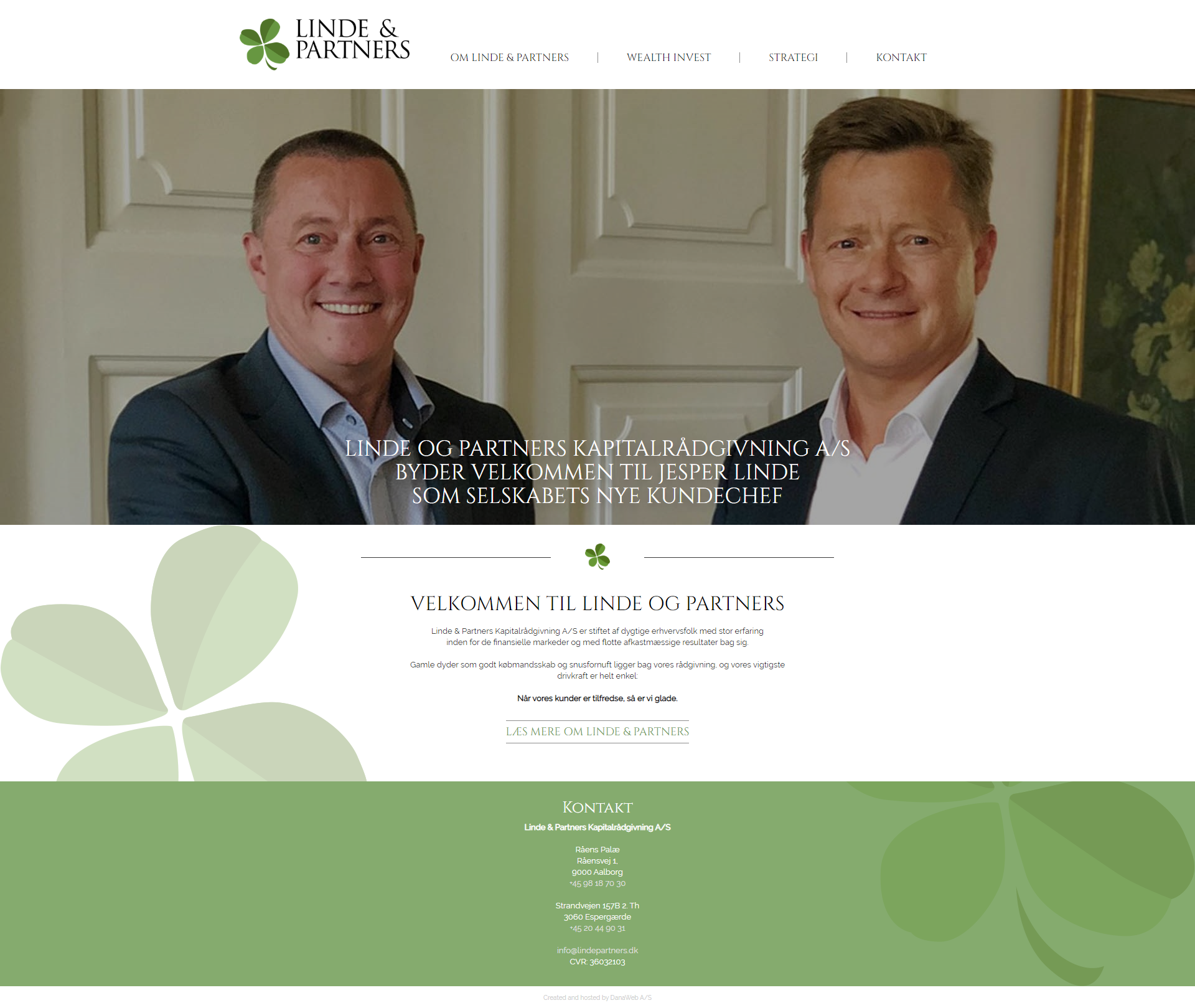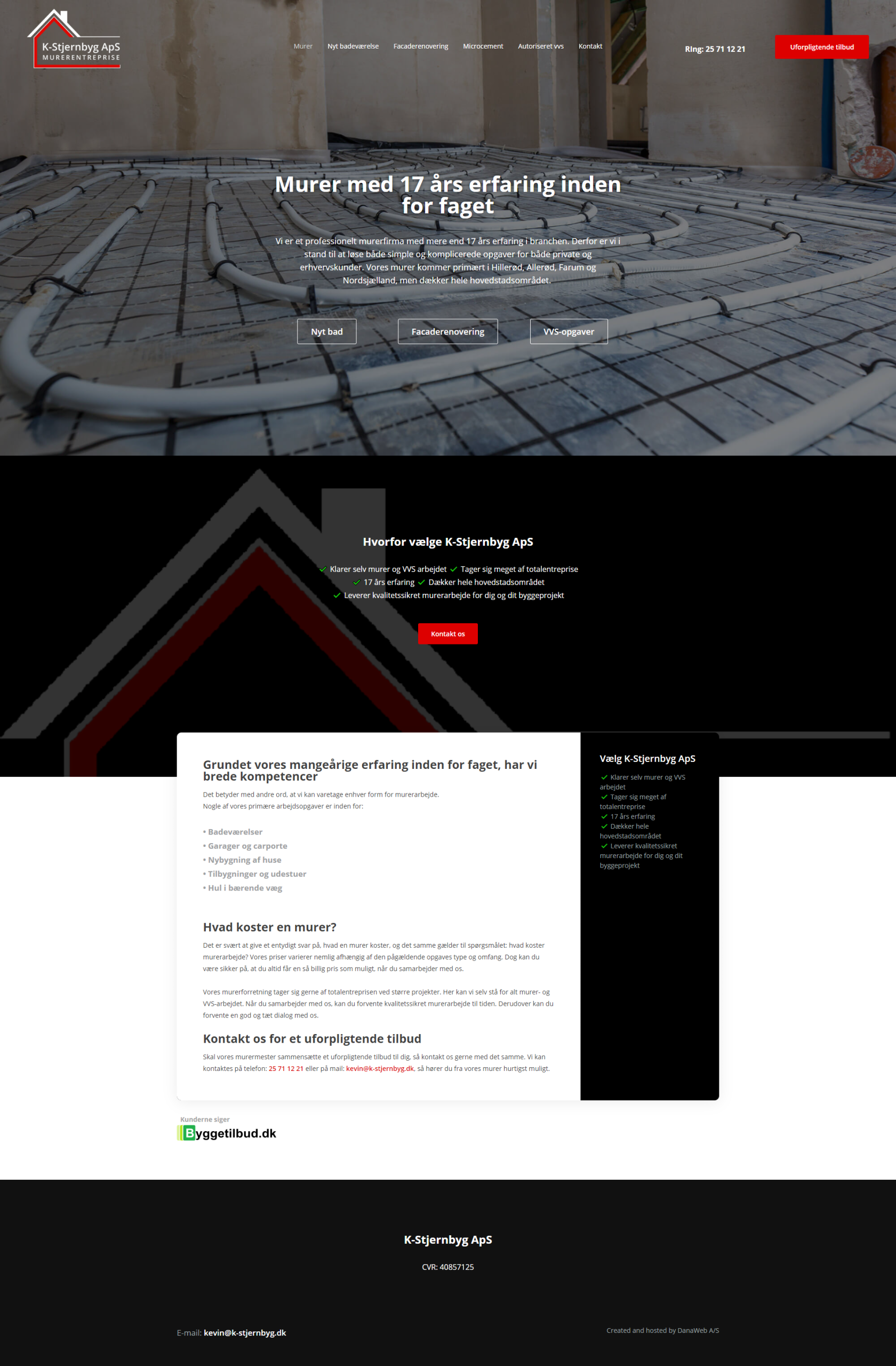 Website layout for a danish company.